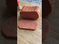 - Open the can of Spam and cut the block of Spam into 6 equal slices.