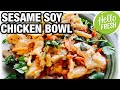 - To make sesame soy chicken bowls, preheat your oven, line a baking sheet with parchment paper and place chicken breasts on the sheet. Sprinkle with sesame seeds and bake for 20 minutes. Meanwhile, prepare a sesame soy sauce, slice the cooked chicken, and assemble all ingredients in a bowl. Enjoy!