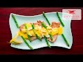 - Meanwhile, in a separate skillet over medium-high heat, heat the olive oil. Add the crab meat and asparagus pieces and cook for 2 minutes. Add the lemon juice and cook for an additional minute.